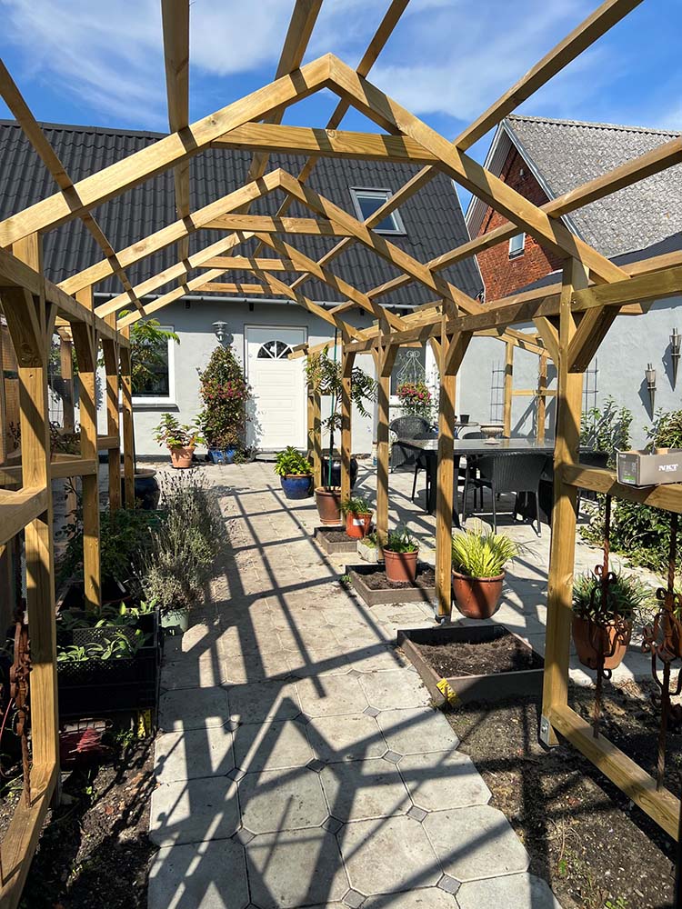 - Elegant pergola design: Jeg opsætter pergolaer, der kombinerer stil og funktionalitet for at skabe en elegant overdækning til din terrasse eller have. Skab et udendørs rum, der ikke kun beskytter mod solen, men også tilføjer karakter til din ejendom.